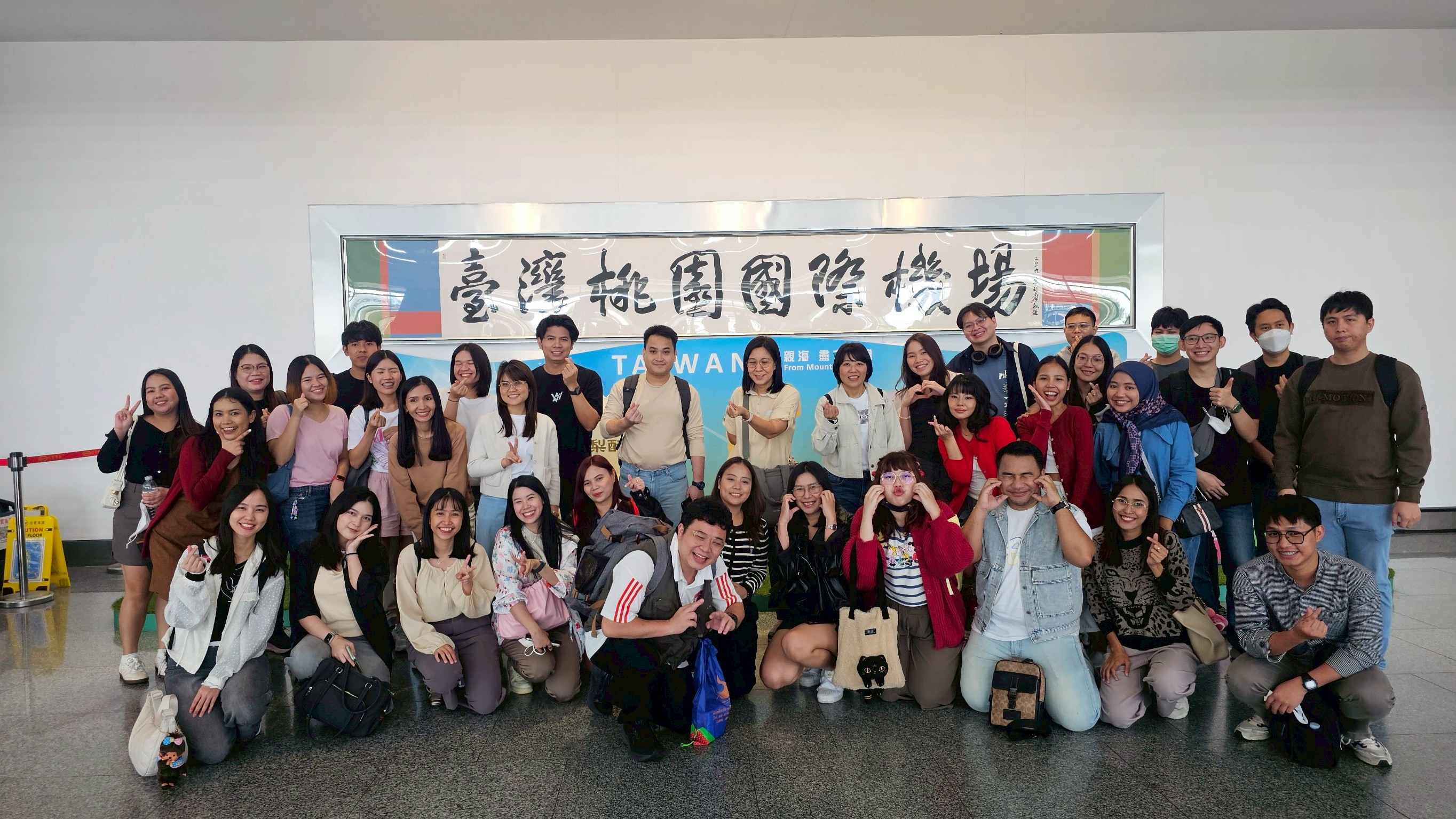คณะเดินทางถึง สนามบินเถาหยวน ผ่านพิธีการตรวจคนเข้าเมืองเป็นที่เรียบร้อยแล้ว
