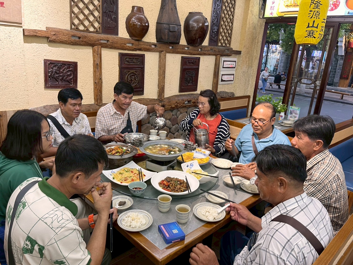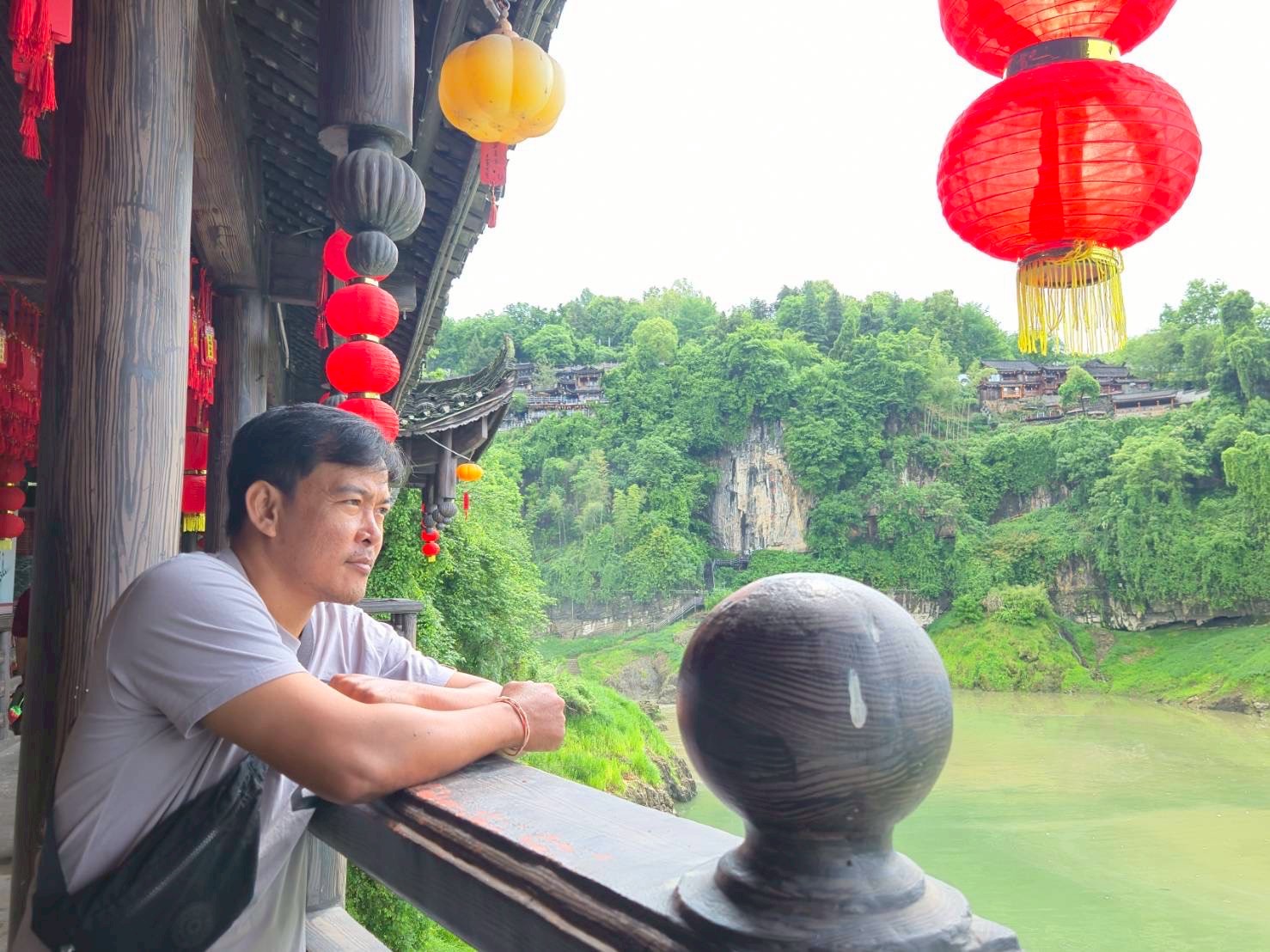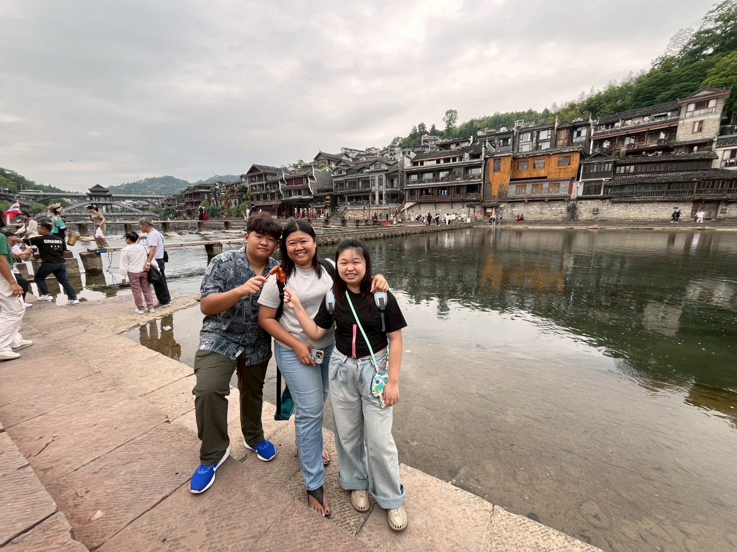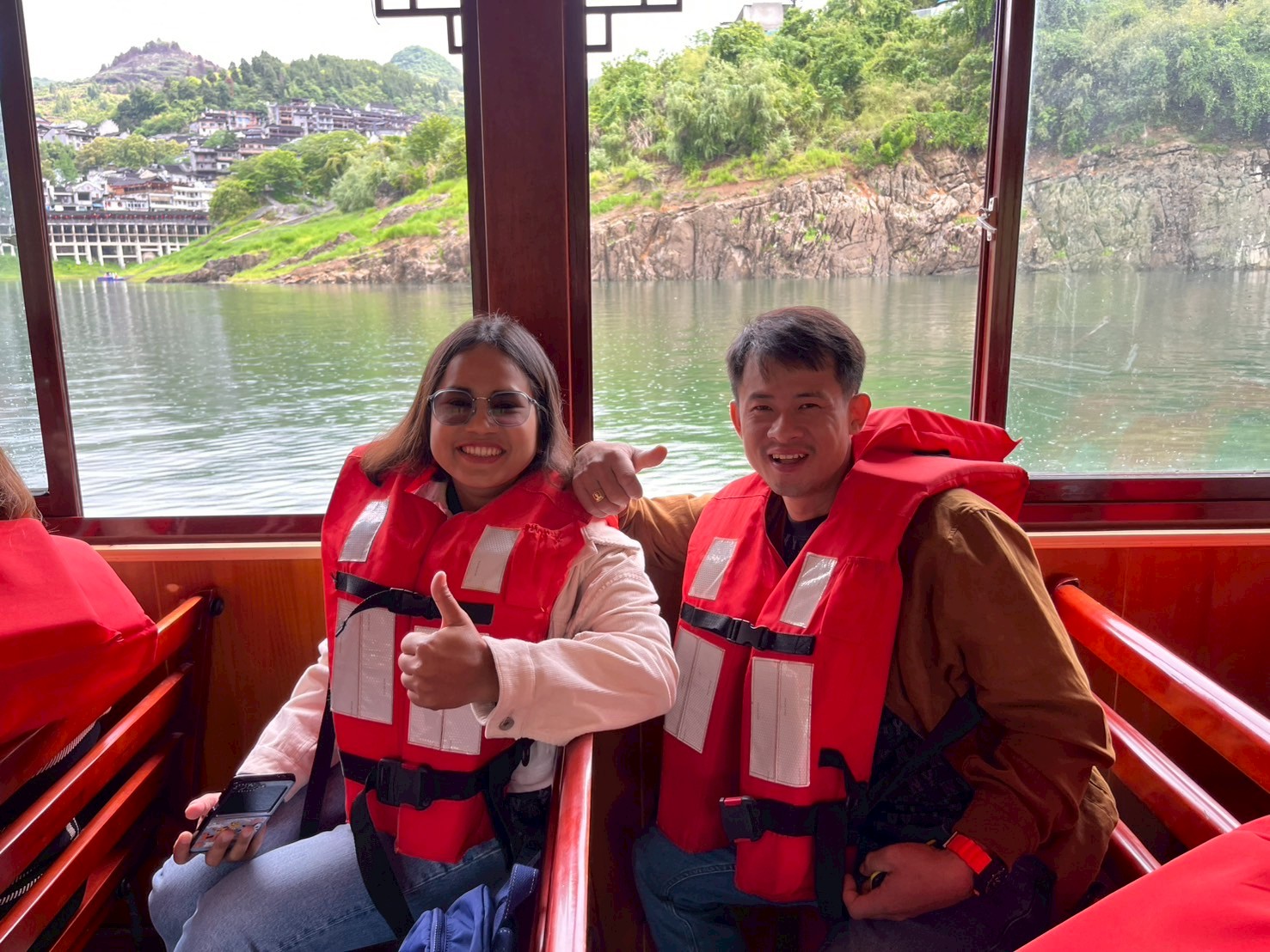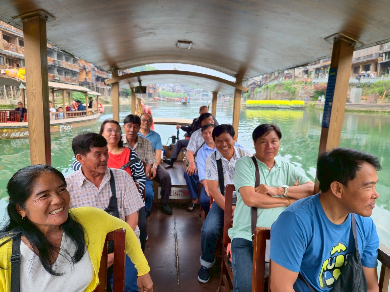 จากนั้นนำคณะเดินทางสู่เมืองฟูหรงเจิ้น ชมเมืองโบราณฟูหรงเจิ้น (Furong Ancient Town) ซึ่งตั้งอยู่เขตปกครองตนเองเผ่าถู่เจียและเผ่าเหมียวเมืองเซียงซี ที่ถูกขนานนามว่า เมืองแห่งน้ำตก นำคณะขึ้นเรือ เพื่อล่องเรือ เดินทางออกจากเมืองโบราณฟูหรงเจิ้น สามารถชมวิวสองข้างทางที่สวยงาม